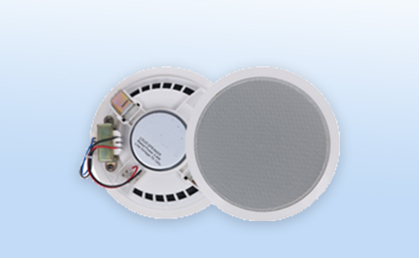 u 室内安装吸顶式安装扬声器,5寸喇叭单元,金属网罩+塑料黑色后罩;u 额定功率:6W/10W可选,声音覆盖范围50m2;;u 驱动电压:70V/100V;u 灵 敏 度:(1W/1M)90dB;u 频率响应:110Hz~15KHz;u 产品材质:塑料+金属;u 喇叭口径:4-6"。